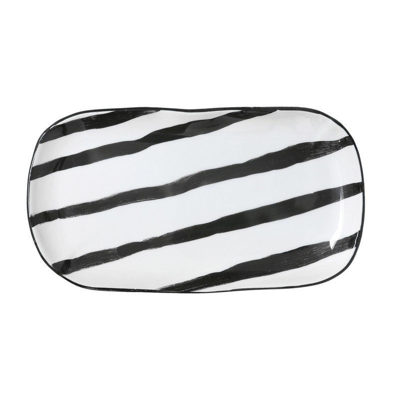 plat rectangulaire porcelaine noir et blanc hk living stripes 25 x 13.5 cm