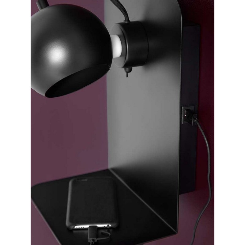 applique murale liseuse avec tablette et port usb metal noir frandsen ball