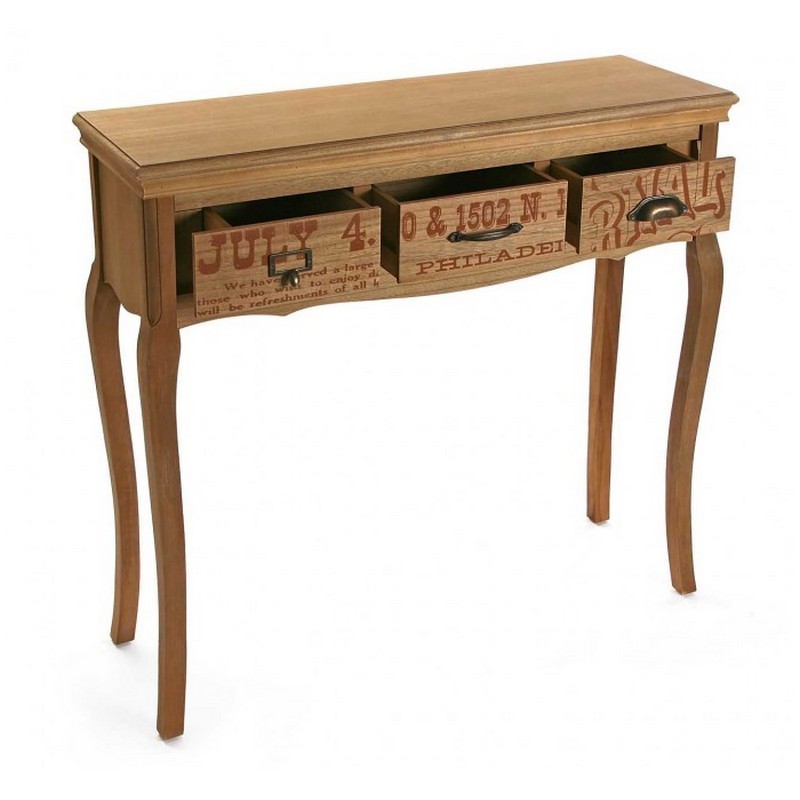 table console d entree bois 3 tiroirs retro vintage versa rian