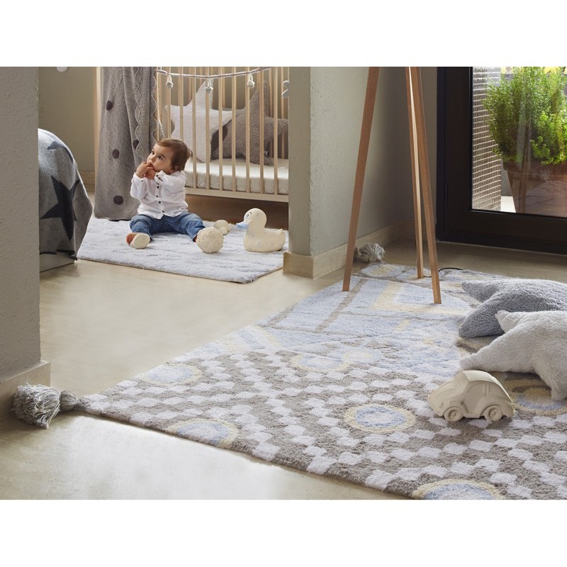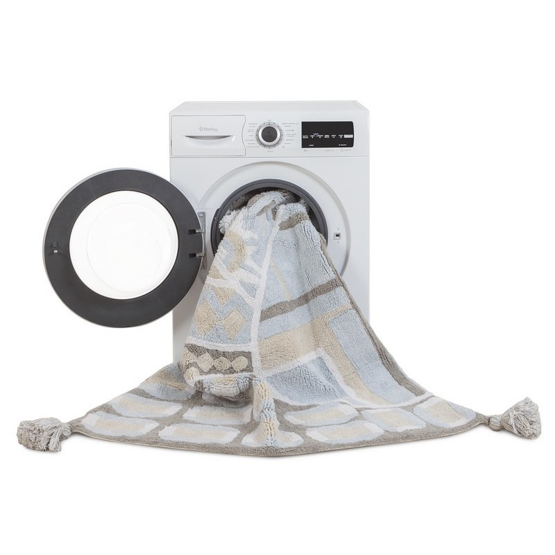 tapis coton lavable machine bleu gris indian bag lorena canals 120 x 160 cm