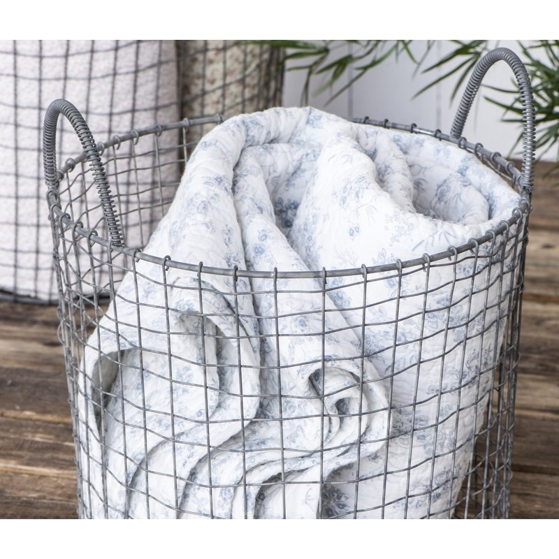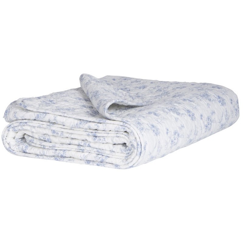 plaid coton matelasse blanc petites fleurs bleus clairs ib laursen 0744-00