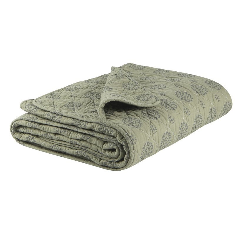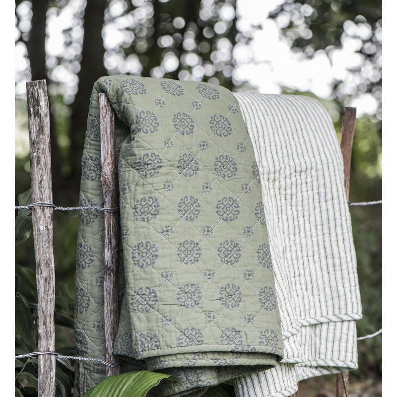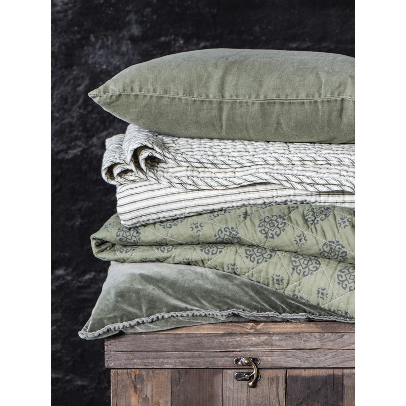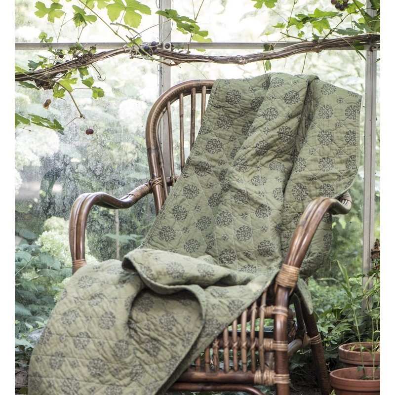 couverture plaid coton matelasse vert olive motif gris ib laursen 0760-29