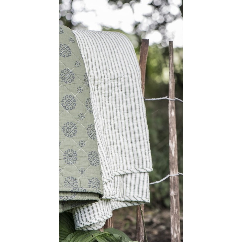 plaid coton matelasse blanc rayures vert olive ib laursen 0768-29