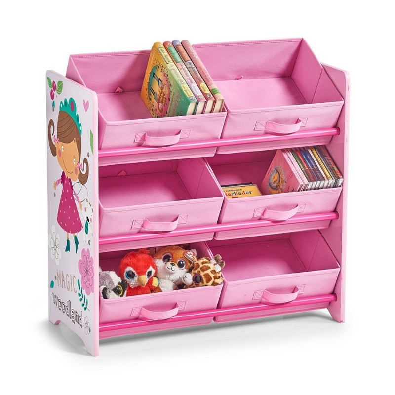meuble etagere de rangement jouets bois rose zeller girly 13494