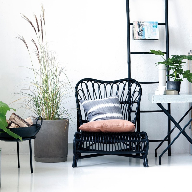 Fauteuil vintage assise basse rotin noir House Doctor Colone Tc0410b