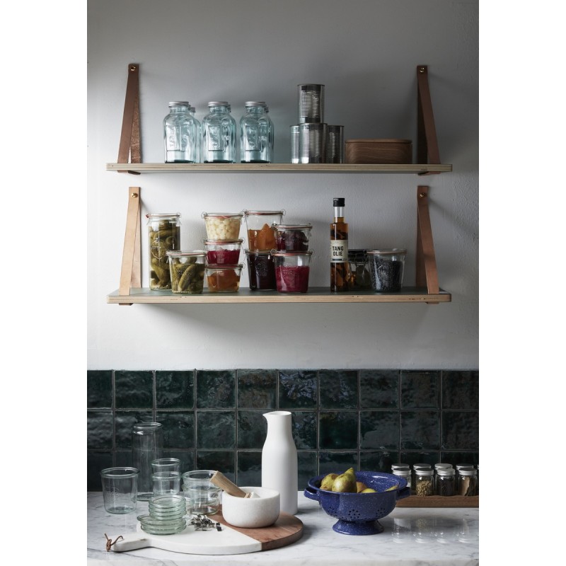 Etagere murale bois sangle en cuir Hubsch