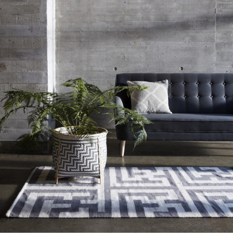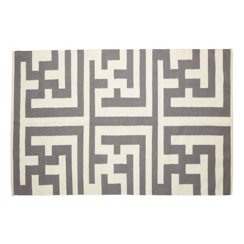 Tapis gris naturel laine Labyrinthe Hubsch 120 x 180 cm