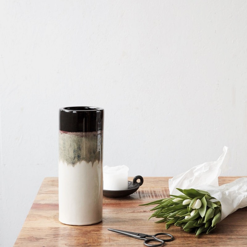 Vase tube House Doctor Eng Mocha terre cuite émaillée