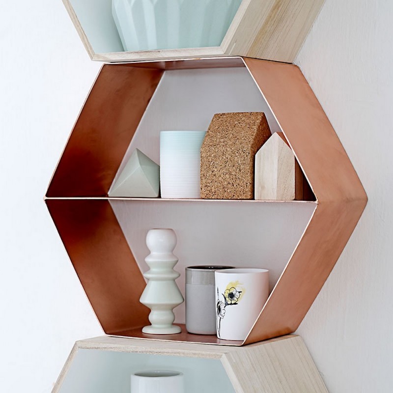 Étagère hexagonale murale métal cuivre Bloomingville