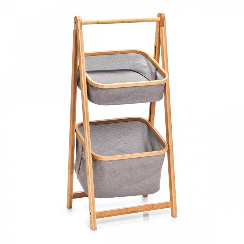 rangement en bois de bambou 2 paniers suspendus tissu zeller