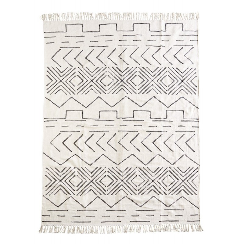 tapis madam stoltz coton blanc ecru noir motifs geometriques