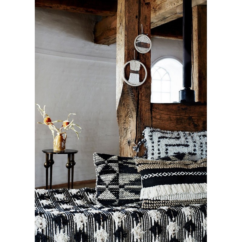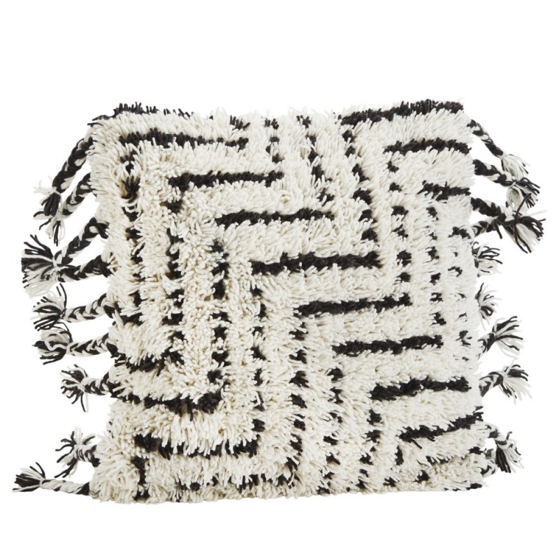 madam stoltz housse de coussin franges laine blanc noir 50 x 50 cm