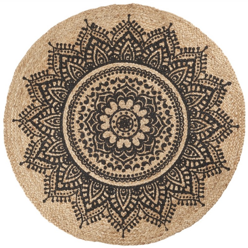 tapis jute rond noir nature ib laursen rosette d 100 cm