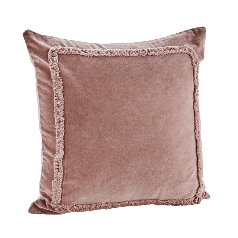 madam stoltz housse de coussin velours rose poudre franges 45 x 45 cm