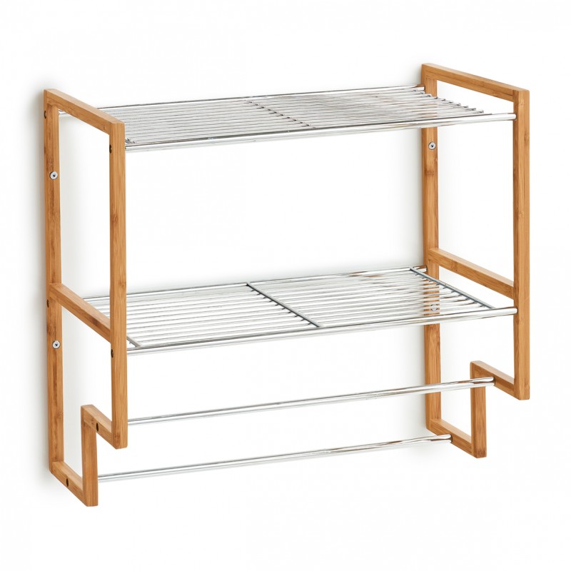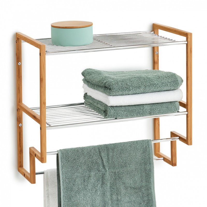 zeller porte serviette mural 2 etageres metal bois 18628