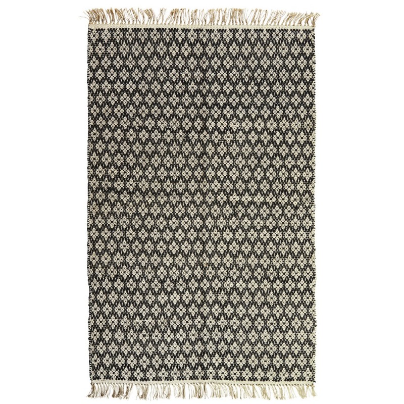 madam stoltz tapis tisse style retro chic noir coton jute 120 x 180 cm