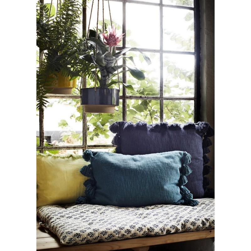 madam stoltz housse de coussin rectangulaire pompons coton bleu
