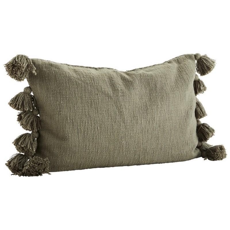 madam stoltz housse de coussin rectangulaire coton pompons vert kaki