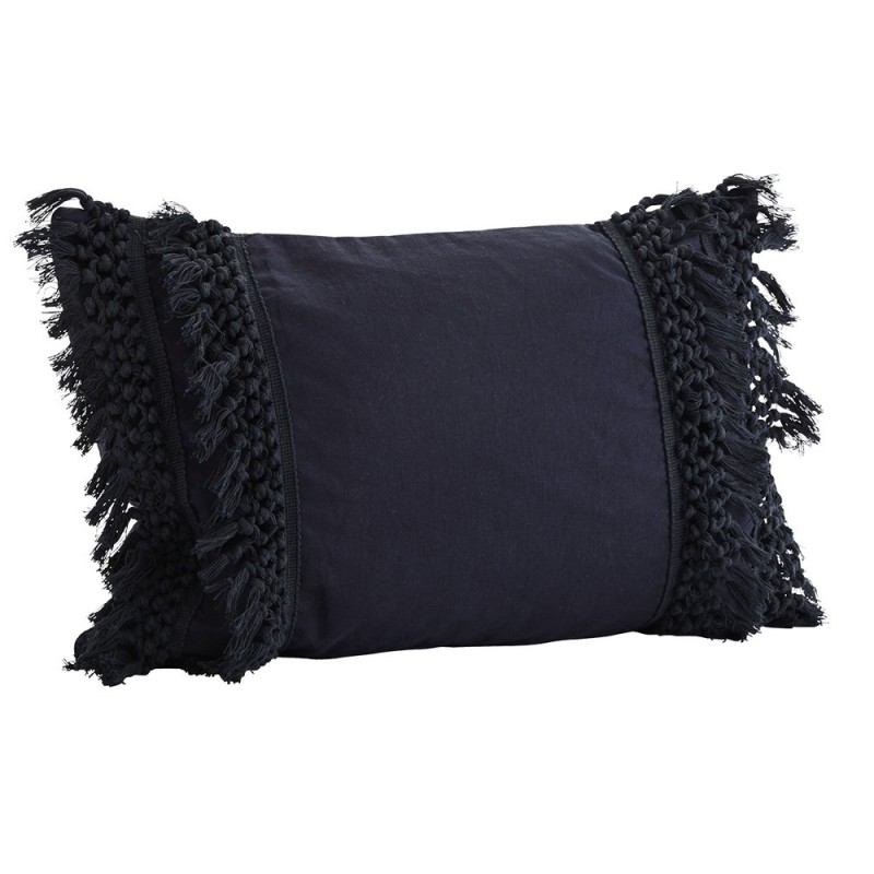 madam stoltz coussin boheme rectangulaire bleu marine franges