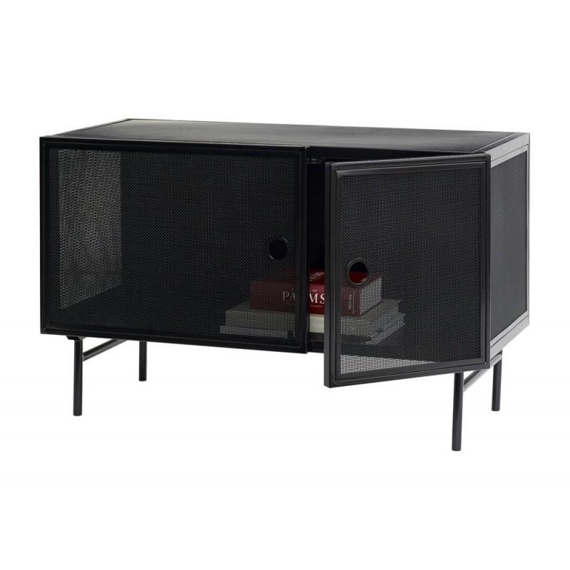 hubsch meuble bas de rangement metal noir perfore style industriel