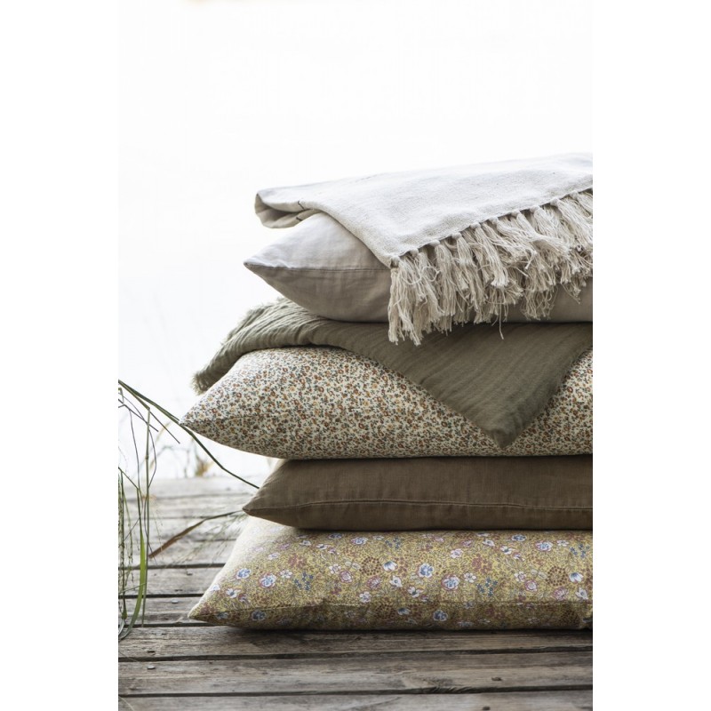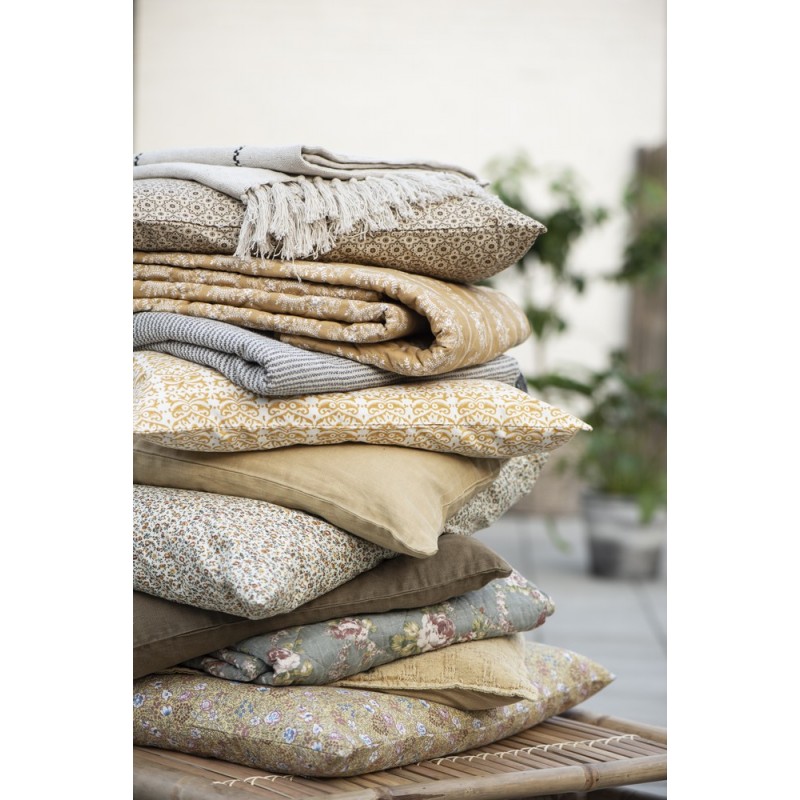 ib laursen housse de coussin coton fleurie jaune 60 x 60 cm