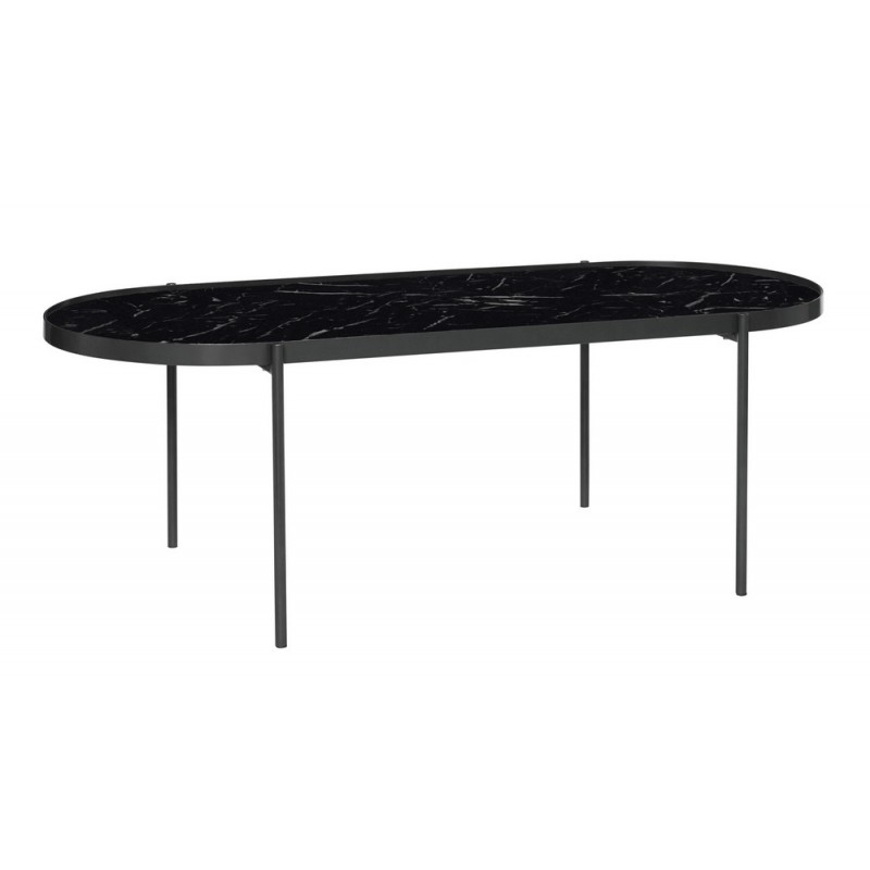 hubsch table basse ovale fine metal noir verre marbre 930802