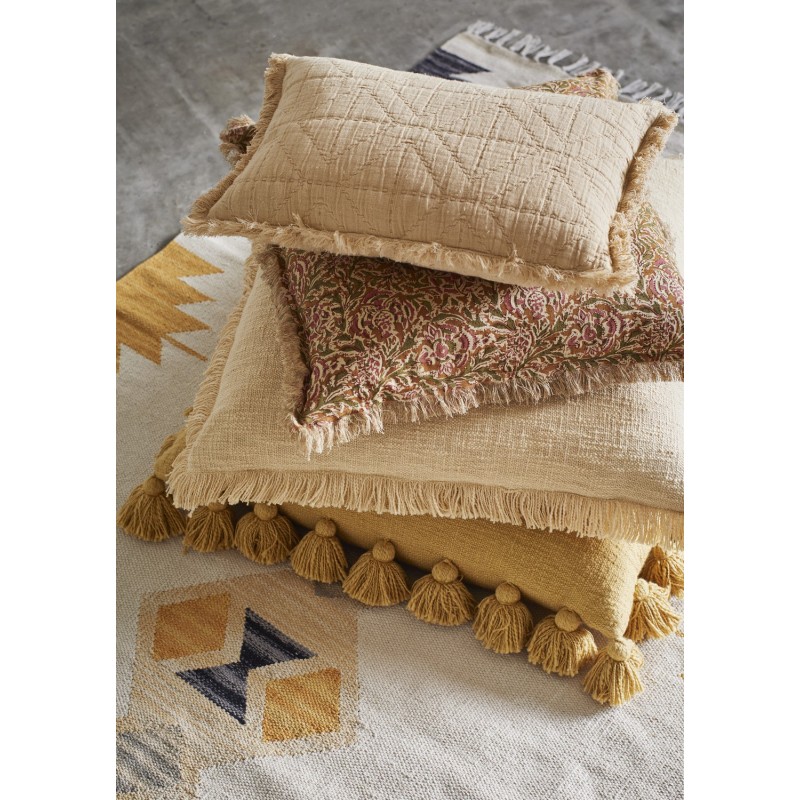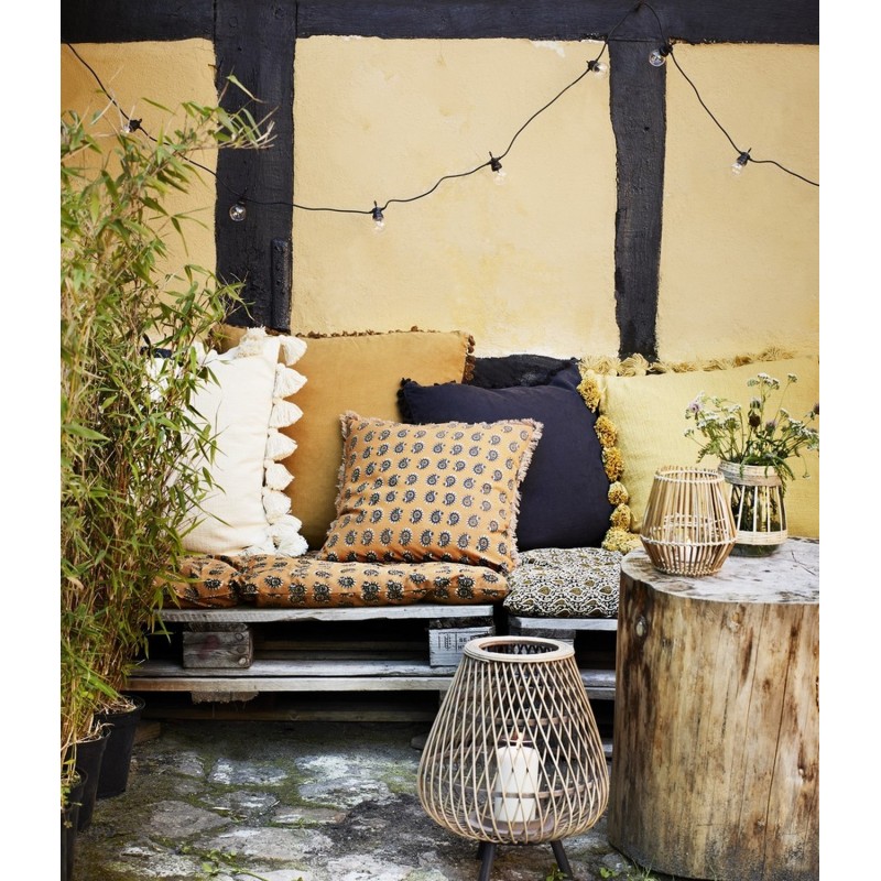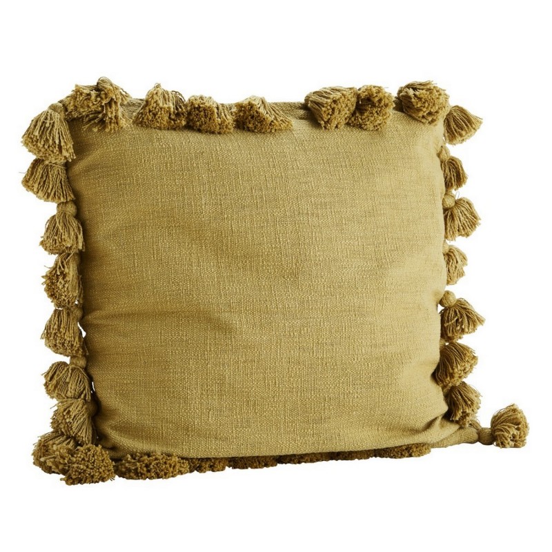 madam stoltz housse de coussin carree xl coton jaune moutarde pompons