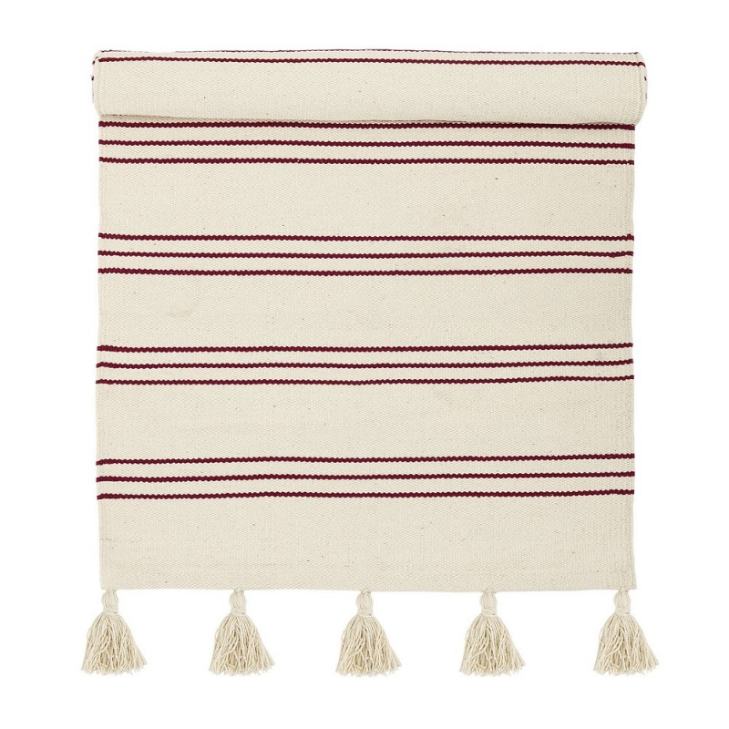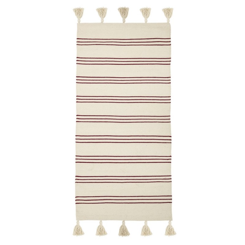 bloomingville tapis descente de lit raye coton blanc rouge 32708242