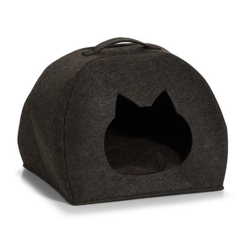 panier pour chat cabane feutre gris fonce 14377