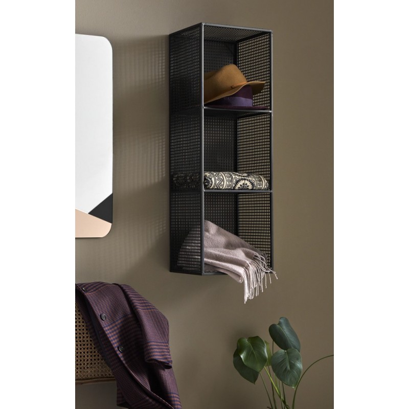 nordal etagere murale style indusrtiel metal noir grillage 3 niches 1099