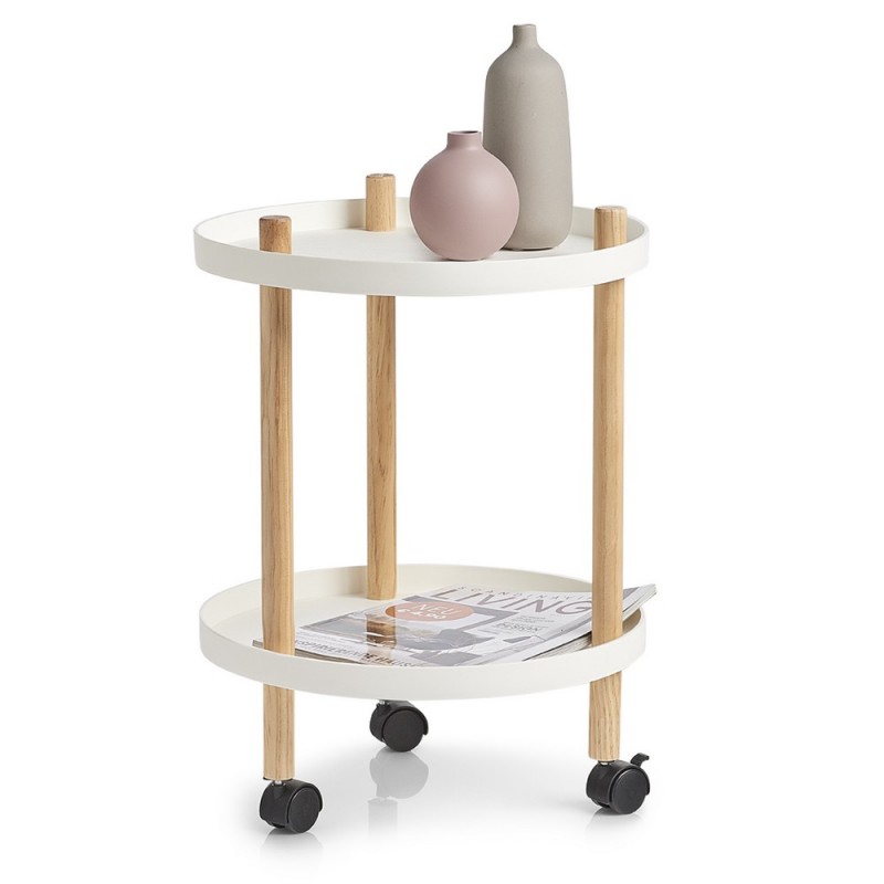 table d appoint ronde a roulettes blanche deux niveaux zeller 17015