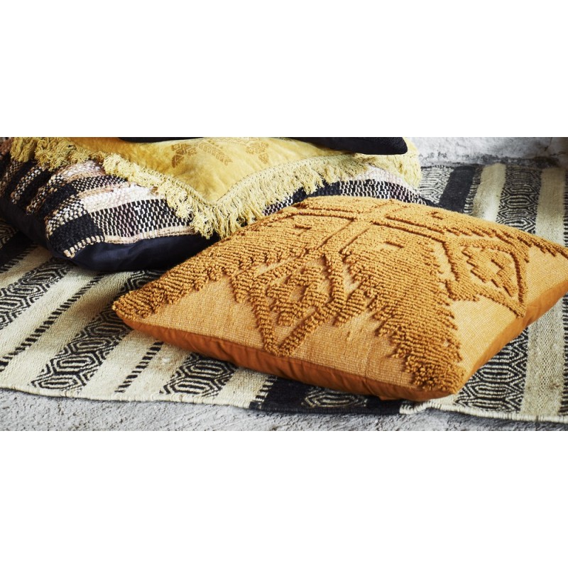 madam stoltz coussin carre broderie geometrique tricot jaune moutarde
