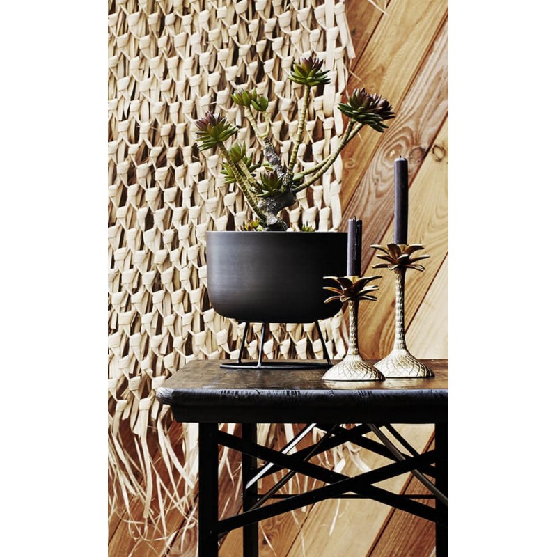 madam stoltz cache pot de fleur metal noir avec support L-1866BL