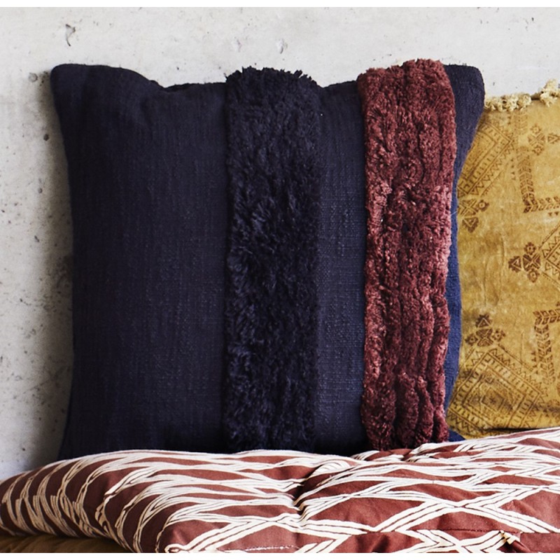 madam stoltz coussin touffete carre coton noir rouge 50 x 50 cm