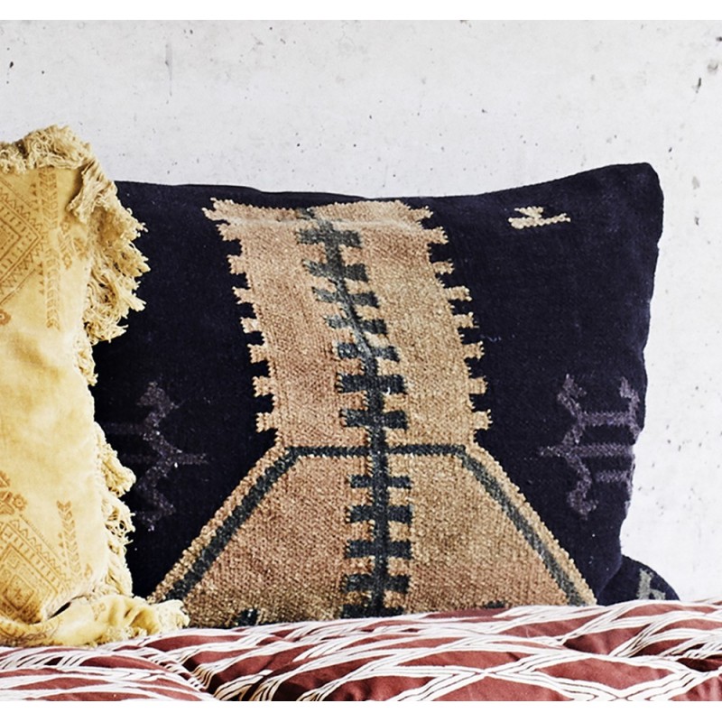 madam stoltz coussin kelim brode rectangulaire coton noir beige