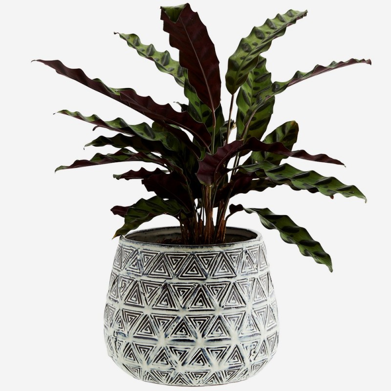 madam stoltz cache pot decoratif en gres motifs triangles HY15490A-16