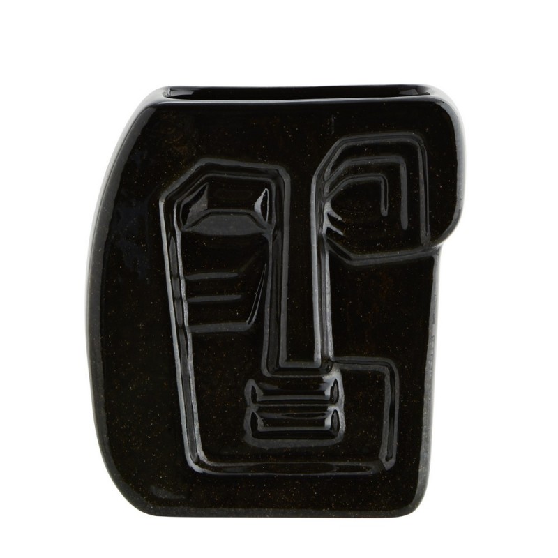 madam stoltz vase sculpture visage gres noir HY15710-16