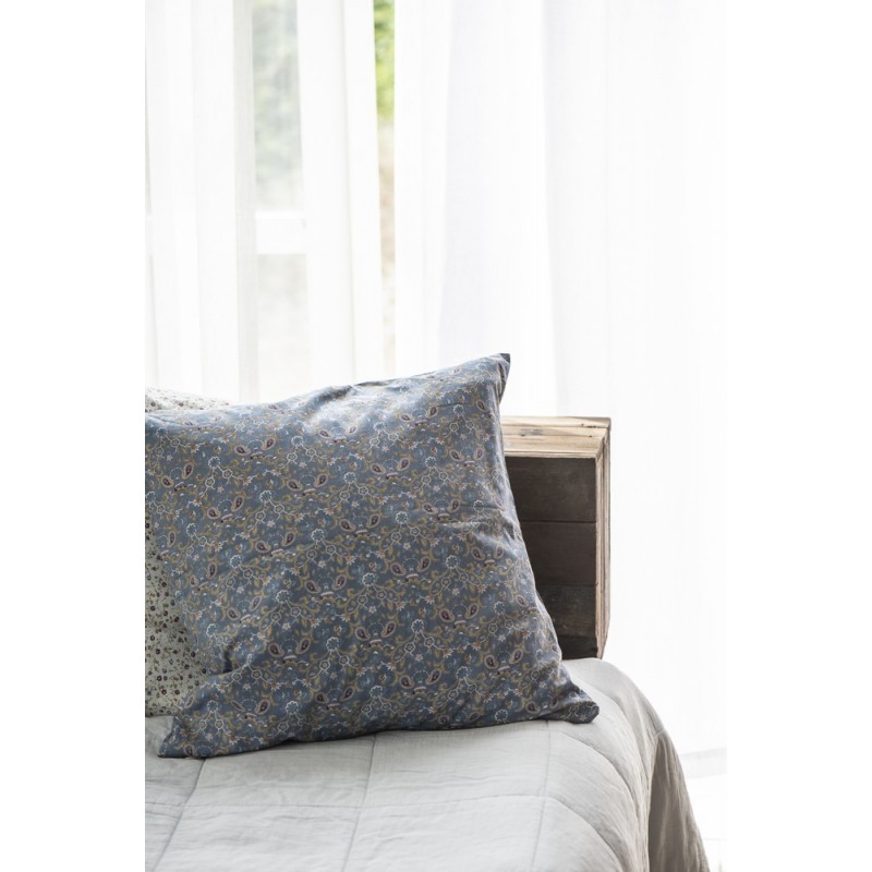 ib laursen housse de coussin fleurie coton bleu 50 x 50 cm