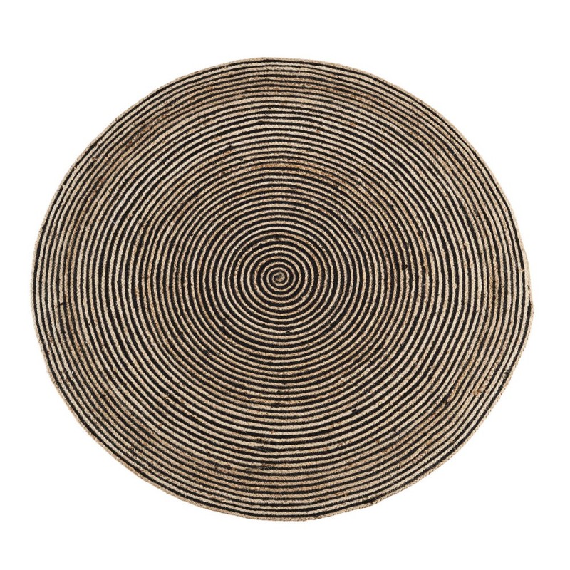 madam stoltz tapis rond jute rayures noir naturel 150 cm