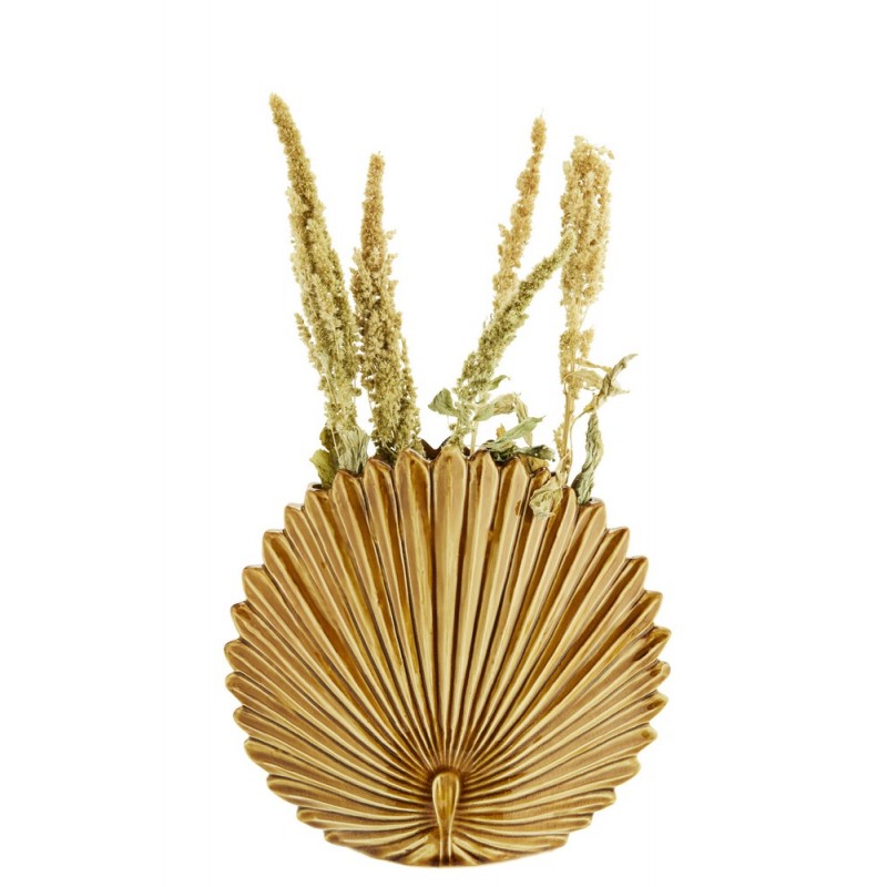 madam stoltz vase decoratif gres jaune moutarde