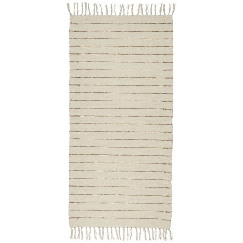 tapis chambre long descente de lit coton ecru raye beige 65 x 130 cm