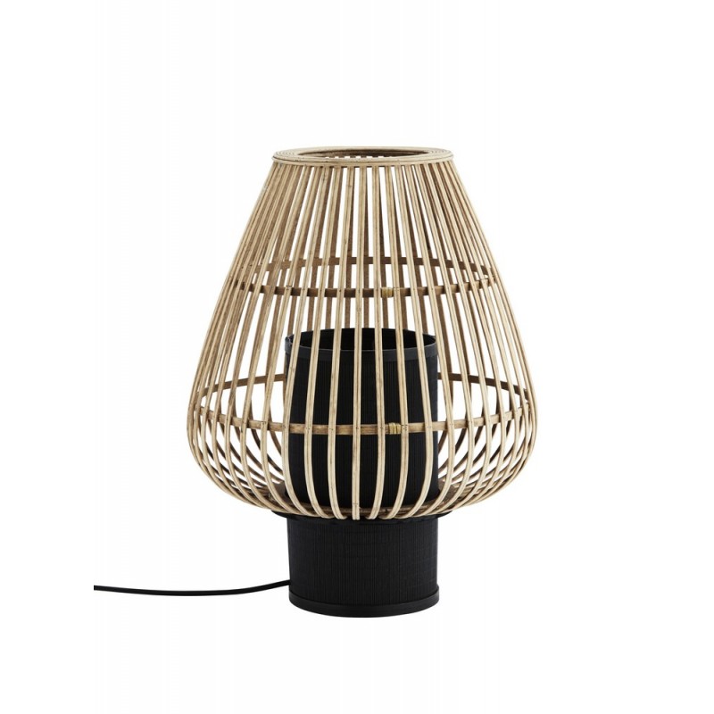madam stoltz lampe de table en bois de bambou naturel metal noir