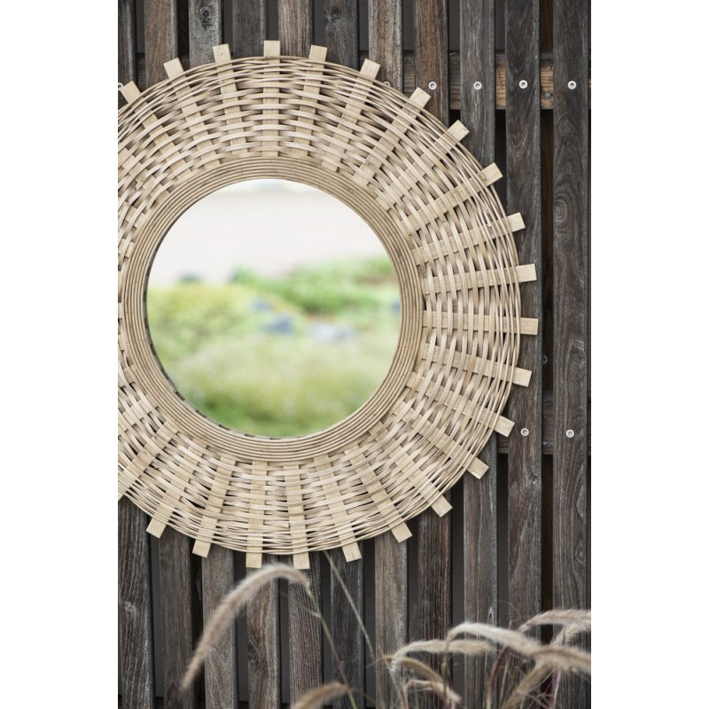 ib laursen grand miroir mural rond soleil bambou naturel tresse 63 cm