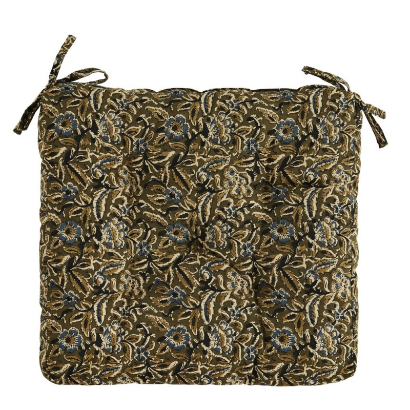 madam stoltz galette pour chaise coton imprime vegetal vert kaki