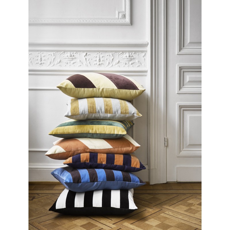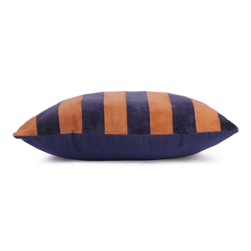 hk living coussin carre raye velours bleu orange 50 x 50 cm