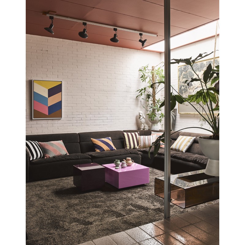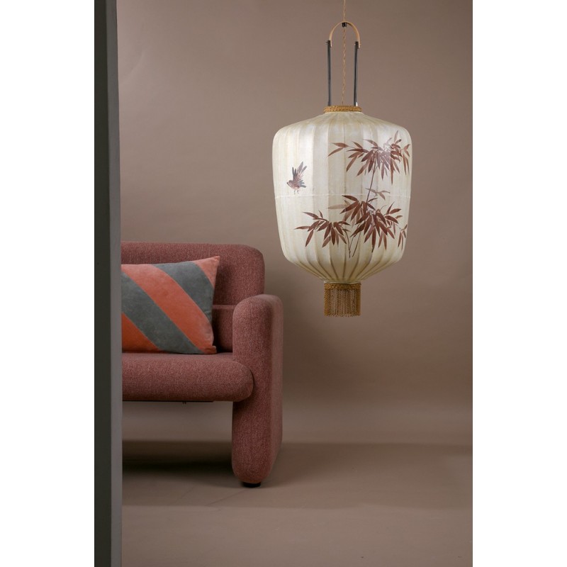 hk living coussin rectangulaire raye graphique velours rose nude gris