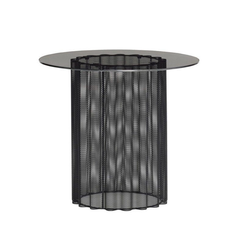 hubsch table basse ronde metal plie perfore plateau verre noir 991103
