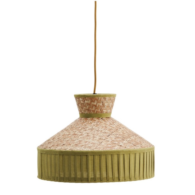 suspension ronde canne tressee et tissu coton vert madam stoltz