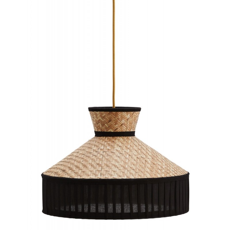 suspension ronde tressee canne et textile coton noir madam stoltz