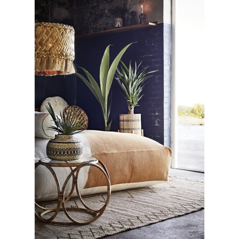 madam stoltz coussin rond coton plisse imprime jaune